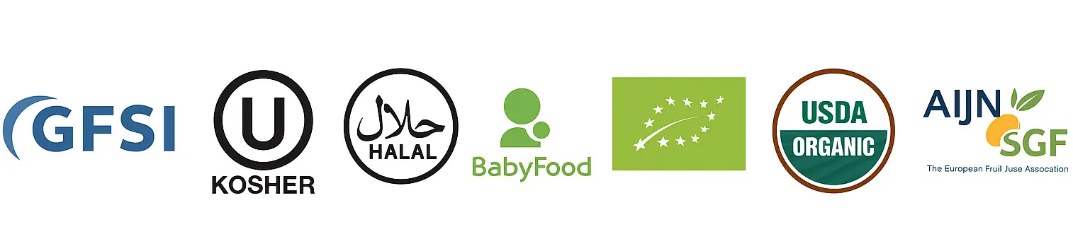 We offer ingredients in multiple formats (juices, purées, IQF, concentrates, aromas), customized to meet the specifications of baby food, beverage, and clean-label manufacturers.